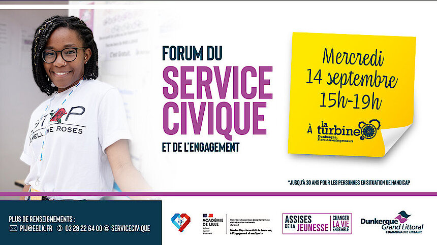Réaliser une mission de service civique, c’est l’assurance de développer de nouvelles compétences, de te sentir utile à la société, de gagner en maturité et en ouverture d’esprit. Pour en savoir plus sur les opportunités à saisir, rends-toi au forum du Service civique et de l’engagement le mercredi 14 septembre de 15h à 19h à la Turbine.
