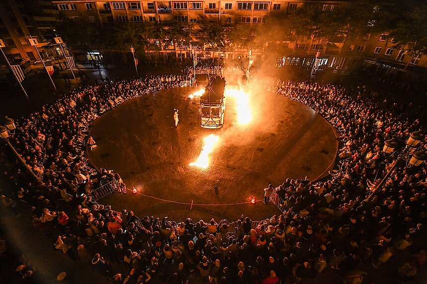 Vendredi, après un début de soirée musical place Jean-Bart, les artistes funambules de la compagnie Underclouds ont offert place Charles-Valentin un instant de poésie, prolongé par la soirée Années 80 du Grand Mix puis la projection du mapping DK’Morphose sur les façades de la place Jean-Bart.