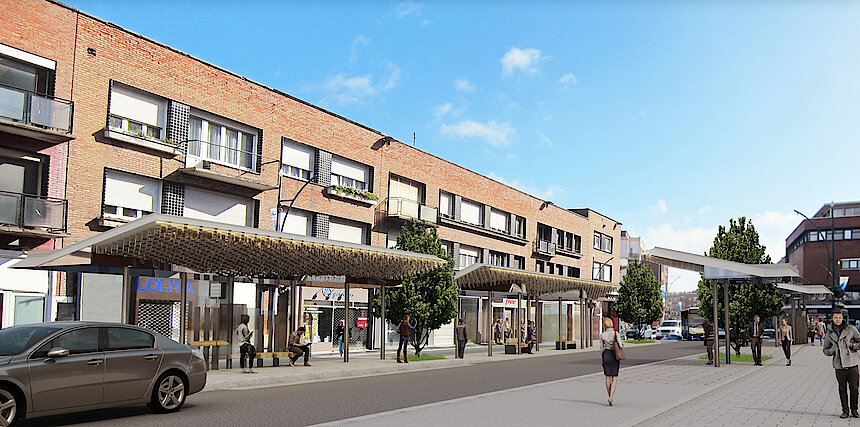 Les travaux d’installation des auvents ont démarré en centre-ville de Dunkerque le 9 avril. Au total, ce sont sept auvents qui viendront habiller les nouveaux trottoirs du centre d’agglomération : un auvent rue Clemenceau, deux sur la place Jean-Bart (qui serviront également d’abribus), trois sur le boulevard Alexandre III (dont deux abribus) et un sur la place du Lion d’Or.