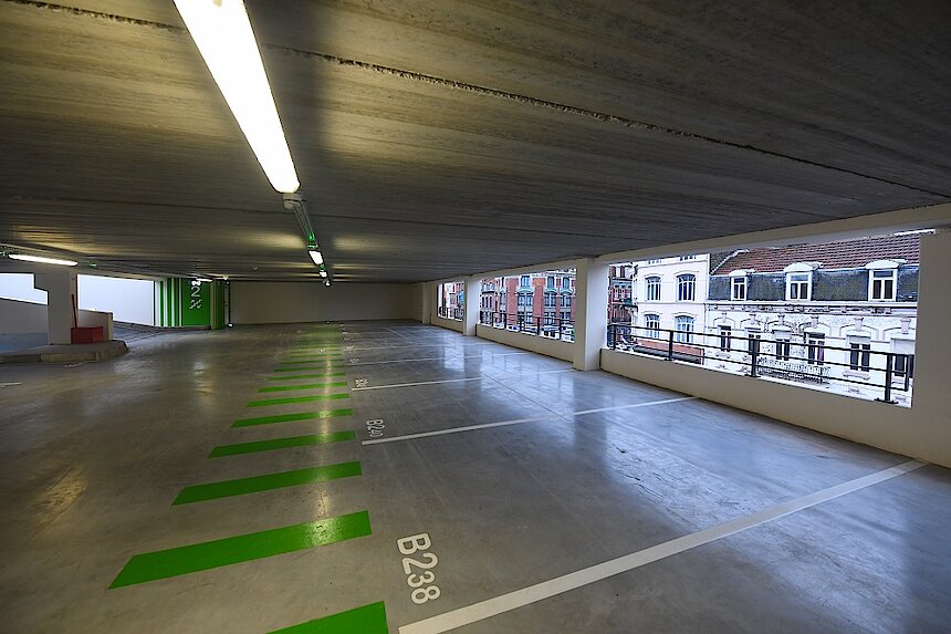 Construit sur une surface de 7644 m2, ce nouveau parking propose actuellement 250 places de stationnement. Dont 7 accessibles aux personnes à mobilité réduite et 12 réservées aux véhicules électriques (avec recharge). Aéré et lumineux, le nouveau parking est également fonctionnel : chaque place est équipée d’un détecteur de présence afin de faciliter le guidage des automobilistes (passage au rouge de la lumière surplombant l’emplacement).