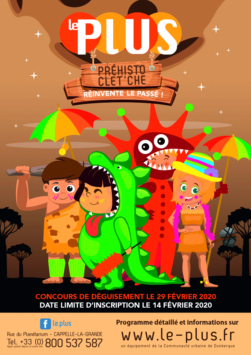 Le Palais de l’Univers et des Sciences ouvre ses portes à tous les enfants de 5 à 12 ans, le 29 février à 14 h 30, pour un concours de déguisement sur le thème de la préhistoire. Il est proposé aux enfants de fabriquer leurs propres costumes préhistoriques en les laissant imaginer « qui ou qu’est-ce qu’il aurait pu être à l’ère préhistorique ». Sauront-ils le faire deviner au membre du jury ? Réponse le 29 février en présence du tambour major de Cappelle-la-Grande, Voch Ier !