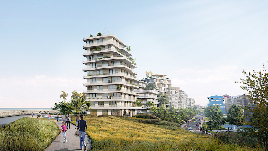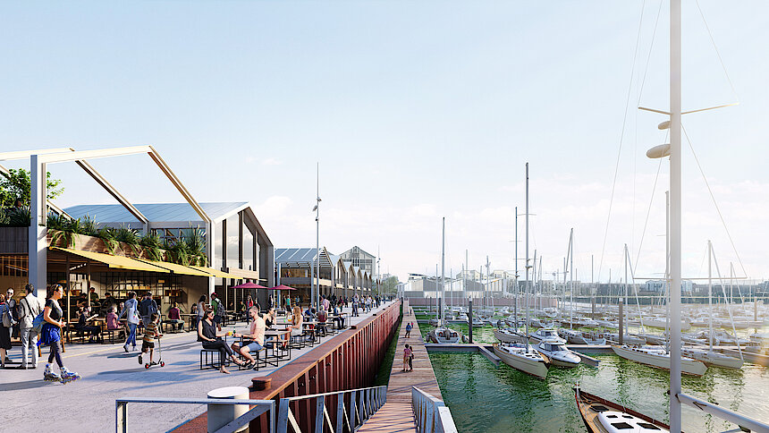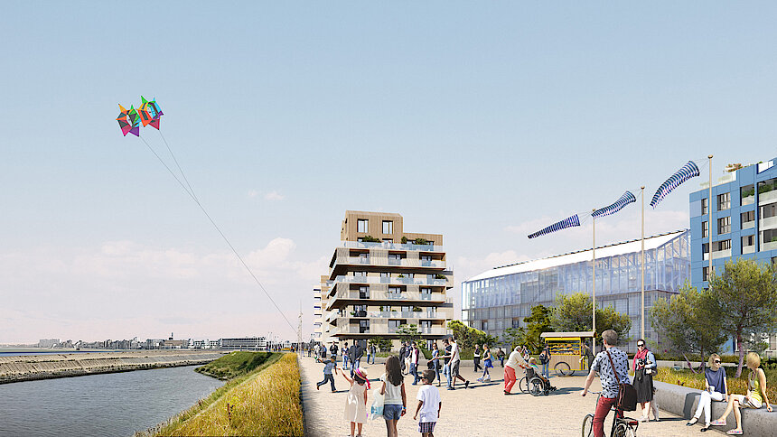 Étroitement lié au déploiement de la nouvelle stratégie plaisance, le projet urbain La Marina s’inscrit dans la rénovation de la digue de Dunkerque, entamée il y a quatre ans entre la passerelle du Grand Large, digue des Alliés, et le Grand Pavois à l’autre bout de la digue de Mer. La troisième phase de cette transformation concerne la partie ouest de la passerelle du Grand Large au quai de la Cunette, reconnectant ainsi la plage au centre de l’agglomération.